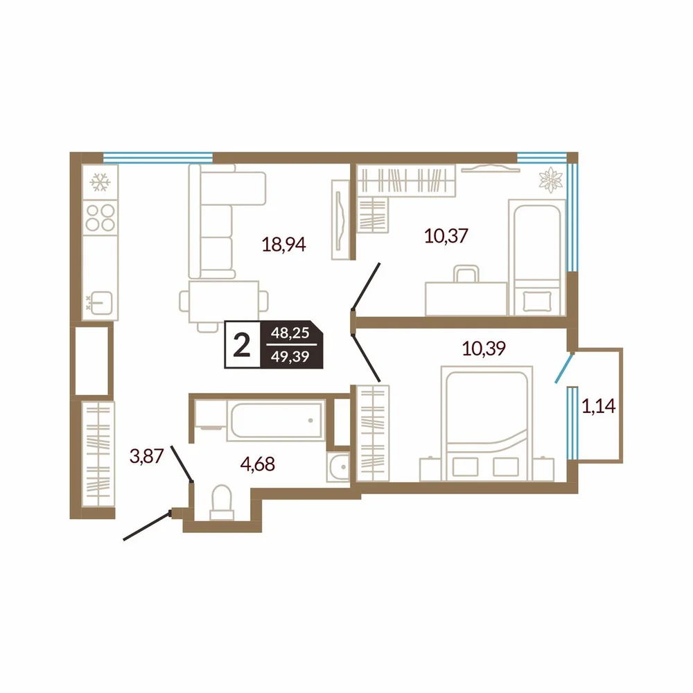 2-комнатная  53.78 м2