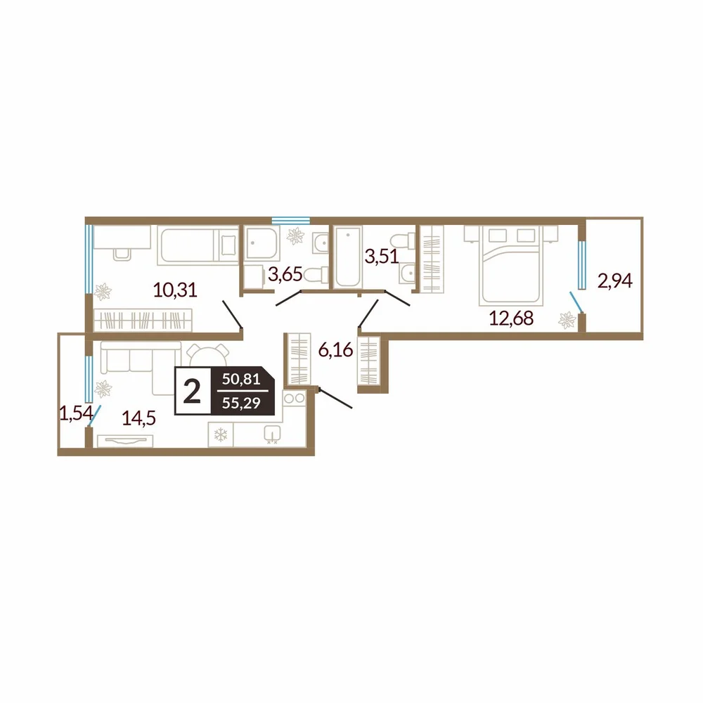 2-комнатная 52.79 м