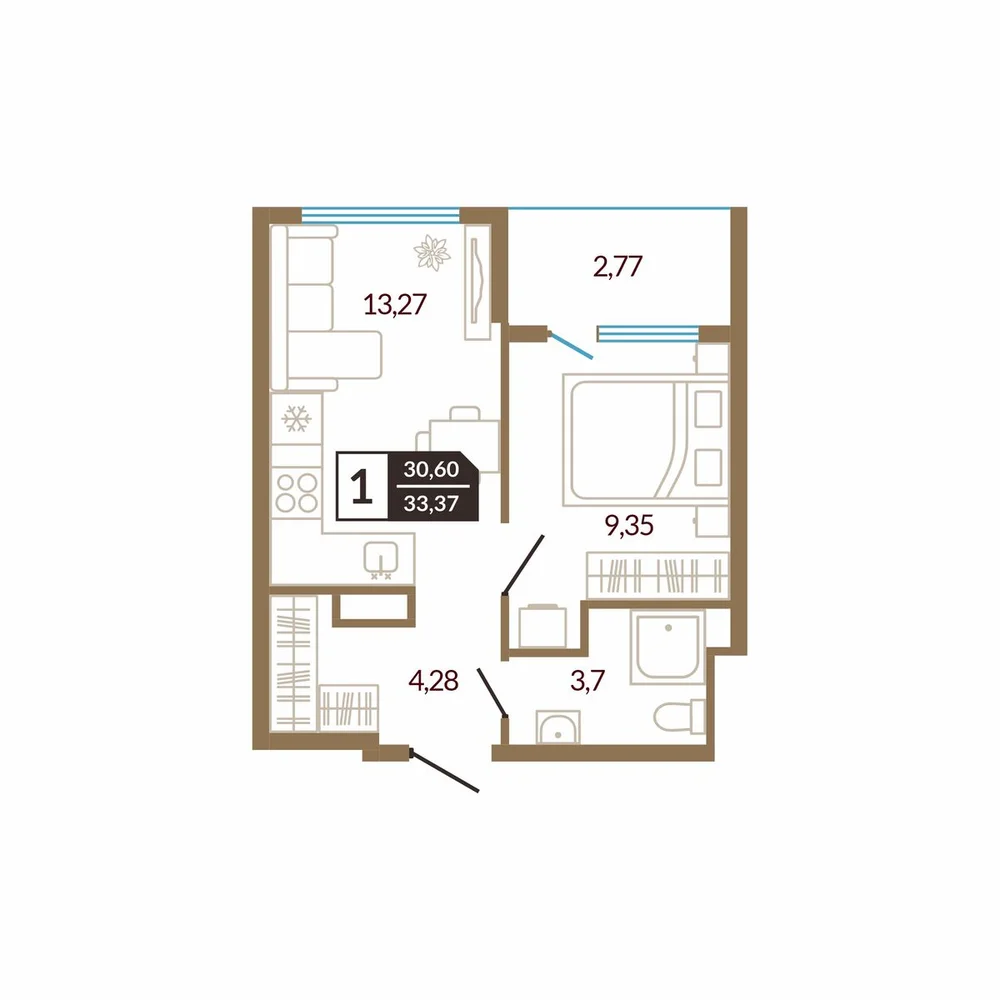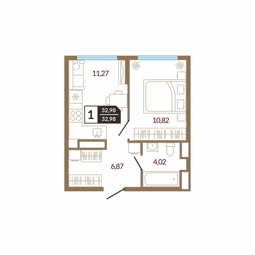 1-комнатная  32.98 м2