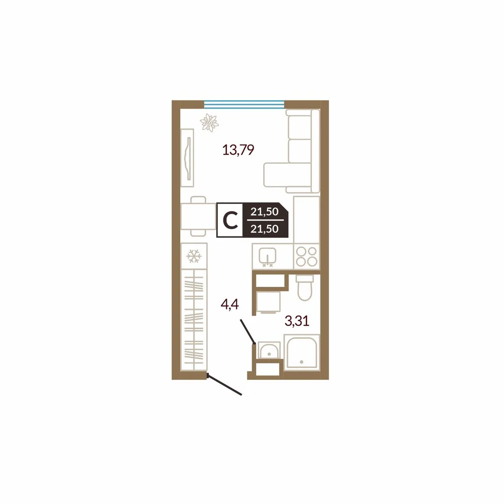 Студия 22.88 м