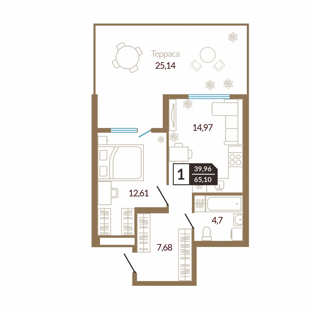 1-комнатная  36.72 м2
