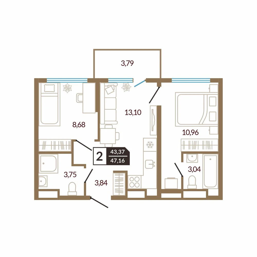 2-комнатная 52.62 м